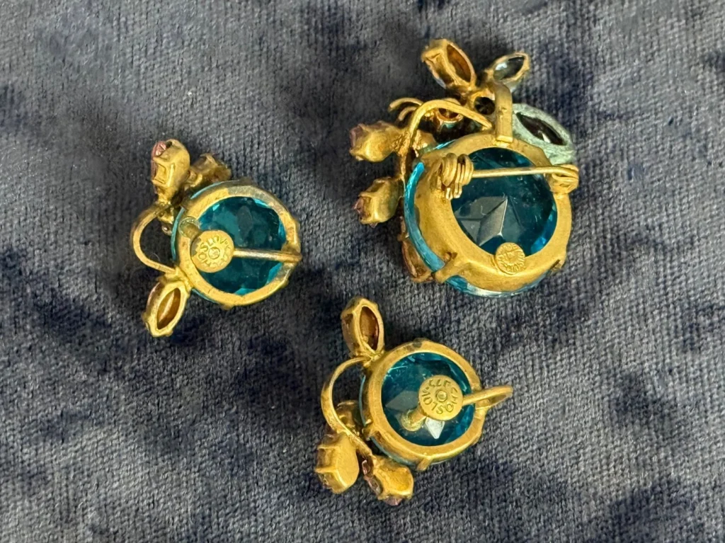 Check the back for clean finishing and solid solder points, since Hobe pieces can be built with a bit more care. Many Hobe designs have a mix of stone shapes, so look for matching sparkle and consistent wear across the piece. Earring clips should close firmly and sit straight, and loose clips can be a problem. When a Hobe piece is complete and not darkened by wear, it tends to look expensive.