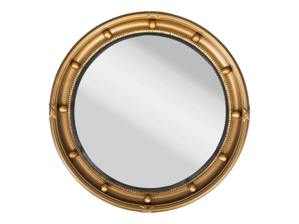 Convex mirrors were prized during the Regency era for their ability to reflect light and create a sense of spaciousness. This particular mirror, with its aged patina, offers a glimpse into the past and is valued at approximately $875.