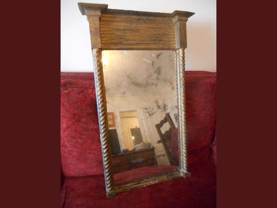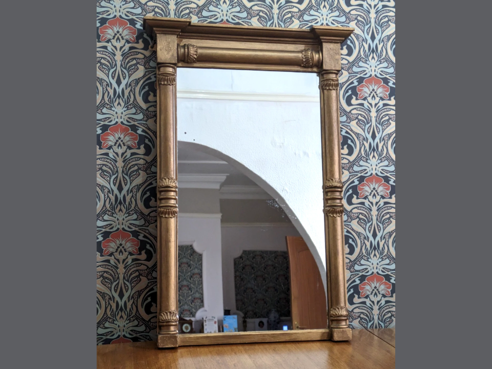 This mirror was designed to hang between windows or decorative columns, a common placement in Regency architecture. The tall and narrow frame often features columns on each side with gilded details, enhancing the illusion of height and space. Pier mirrors were a staple in grand townhouses, reflecting light and luxury into formal rooms.