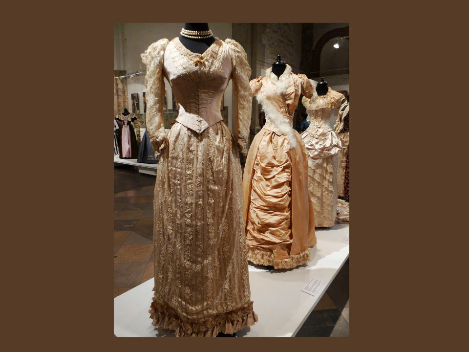 The Victorian era is known for its detailed and elaborate fashion. Dresses were often made from luxurious fabrics like silk, satin, and velvet, adorned with lace, ribbons, and corsets. The influence of Queen Victoria’s style was key, with high-necked collars, long sleeves, and full skirts. Corsetry was a major element in women’s fashion during this time, creating a distinctive hourglass shape that became a symbol of femininity.