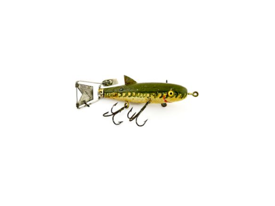 This underwater minnow dates from the earliest days of American lure manufacturing, though its maker remains unidentified. At a 2006 auction it sold for about $42,500.