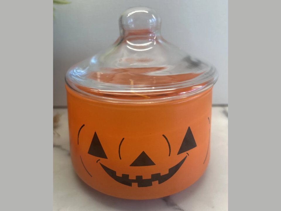 Hazel Atlas is known for its whimsical and spooky glassware, and their Jack-O’-Lantern pieces have become a favorite for Halloween collectors. These glass cups and mugs feature a smiling pumpkin face in orange, perfect for adding a festive touch to any spooky gathering. The design is simple yet playful, making it a go-to for those looking to celebrate Halloween with vintage flair.