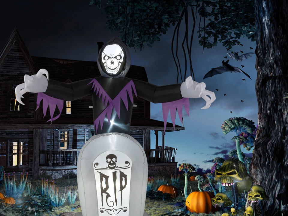 The Grave & Grim Reaper inflatable is one of the more haunting yet playful Halloween inflatables. Featuring a tall, skeletal figure dressed as the Grim Reaper, this inflatable often includes a black robe and a scythe. The Grave element typically shows tombstones and other spooky details, adding to the eerie vibe.
