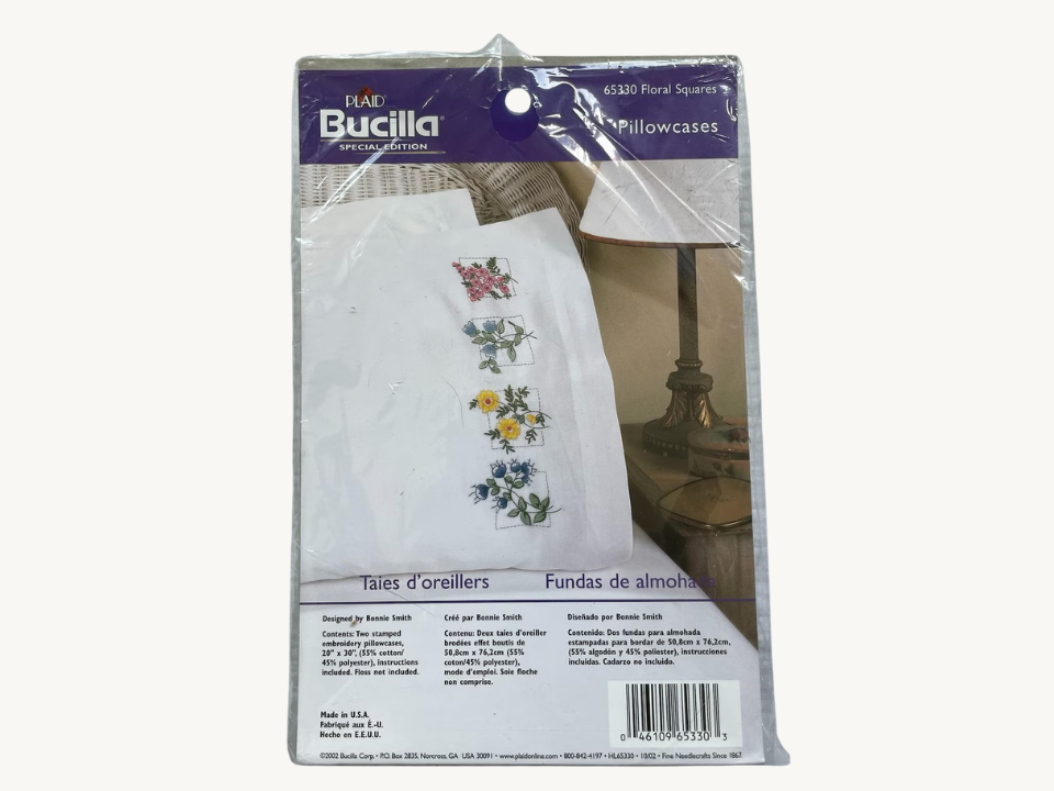 Because pillowcases are so easy to store, many people enjoy starting with them before moving into larger linens. The Bucilla name helps the set feel more recognizable and less random. Floral pillowcases also work as display pieces when folded over a chair or laid across a bed. Clean packaging and clear stamped lines usually help them look more appealing.