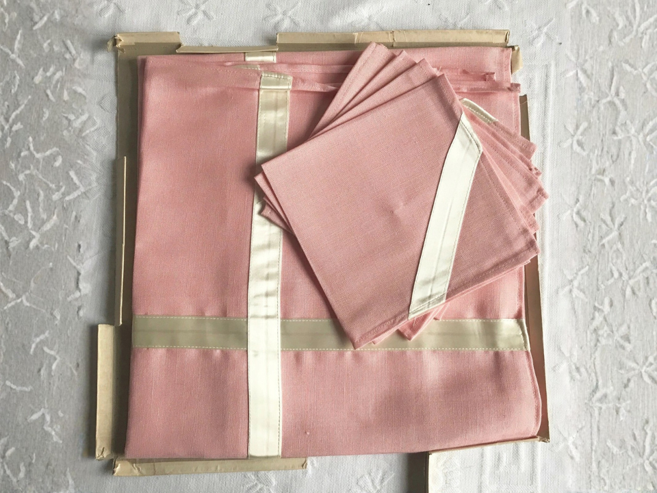 Paragon Needlecraft Pink Linen Tablecloth With Napkins