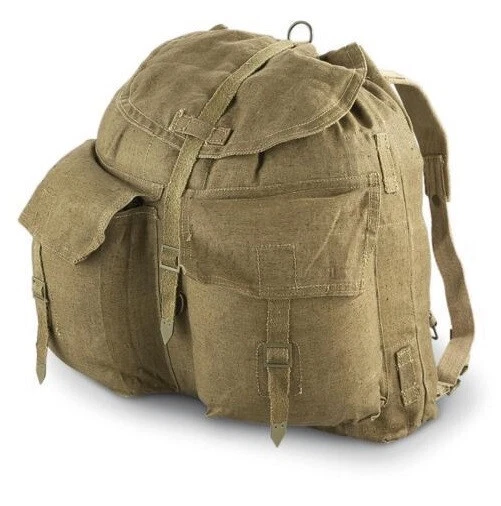 The Czech M60 Rucksack was introduced by the Czechoslovakian Army in the 1960s. Constructed from durable canvas with leather straps, this rucksack features a roll-top closure and external pockets for additional storage. It was designed to carry equipment during military operations, with a focus on comfort and practicality. The rucksack’s robust construction allowed soldiers to carry essential gear without sacrificing mobility. Its simplicity and practicality make it a highly collectible item.