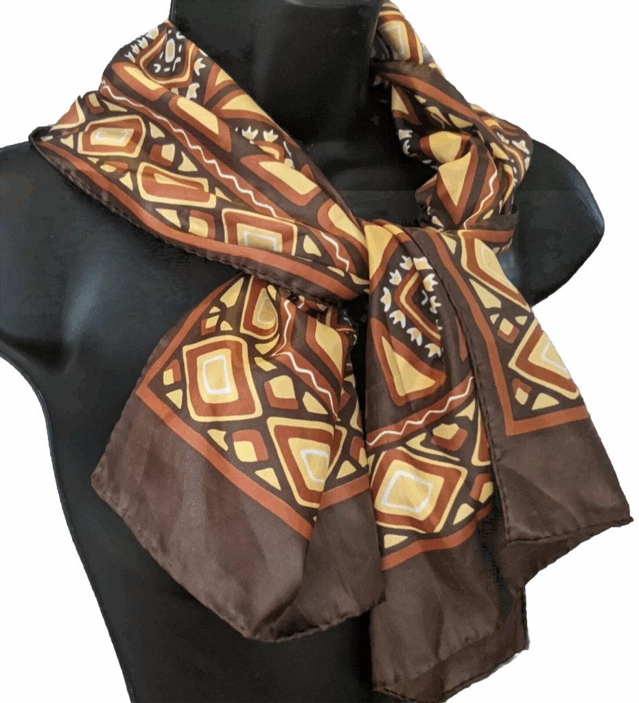 In the 1970s, designer Frankie Welch created this long scarf using Qiana nylon, a fabric that was quite revolutionary for the time. The scarf features a sleek design and the signature Qiana nylon material, which was known for its luxurious feel and durability. Niche collectors are drawn to this scarf because of its unique fabric and the designer’s connection to the era’s fashion scene. These scarves generally sell for around $90 to $200 depending on their condition. Be sure to verify the Frankie Welch label and check for fabric consistency and intact prints.
