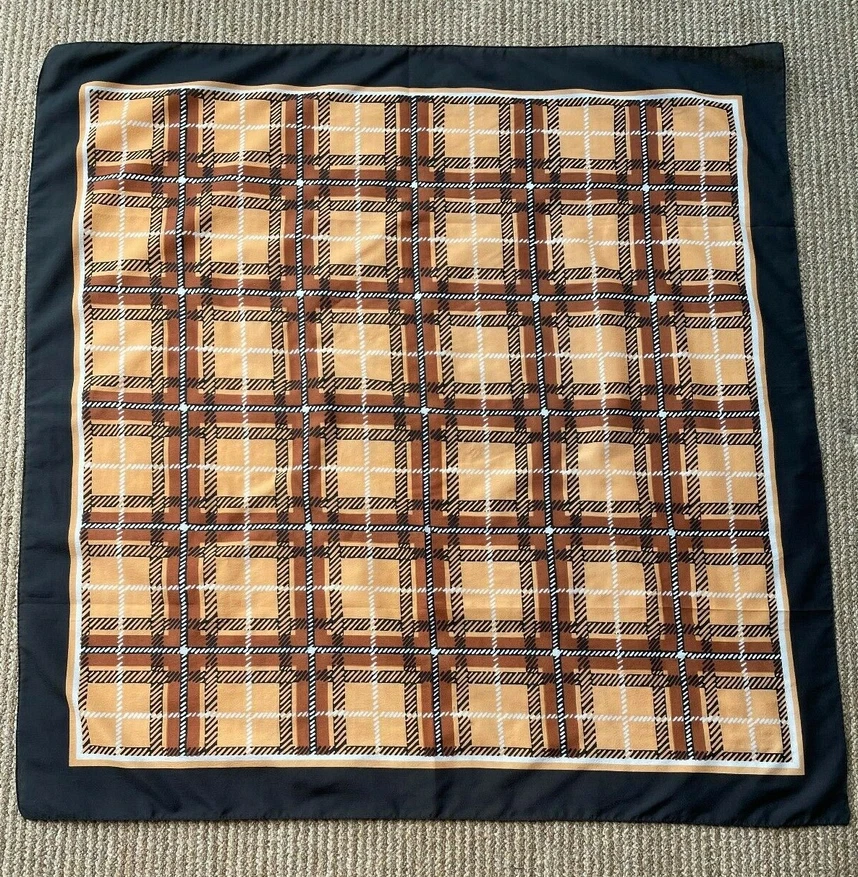 This 1970s scarf from Japan features a bold, geometric print in vivid colors, typical of the design trends of the time. The use of nylon as the fabric choice adds a shiny, reflective quality to the design, making it more eye-catching. Collectors are drawn to this scarf due to its vibrant pattern and the fact that it’s from an era known for experimental uses of synthetic fabrics. The market value for a well-preserved version can range from $40 to $120, depending on condition and print quality. Be sure to check for intact edges, original tags, and no fading or wear.