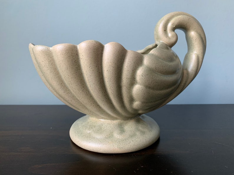 A shell planter works nicely with trailing greenery, ferns, or small dried arrangements. The softer outline helps a porch setup feel breezier and less formal. Haeger made many pieces that were easy to use in everyday decor, and this is one of them. That makes it a simple addition to a wider planter group.