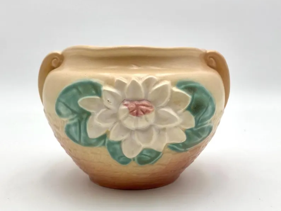 Older Hull pieces often stand out because the decoration feels more sculpted than painted on. The Hull Water Lily L 23 planter was produced in 1937, and it is made of pottery with a water lily design and a decorative Art Deco look. People collect it because it feels older and more ornamental than many mid-century porch pots. Its current market value is about $50.