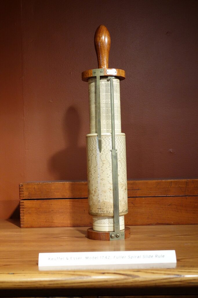 This model emerged in 1878 and saw production until around 1973. It uses a helical main scale wrapped around a cylinder offering an effective scale length far longer than flat slide rules, giving it high calculation accuracy. Its age, mechanical complexity, and relative scarcity make it desirable among collectors. Examples on the market sometimes fetch $400 to $600, particularly for well preserved units. As a relic of pre-calculator scientific instruments it carries a strong vintage appeal.