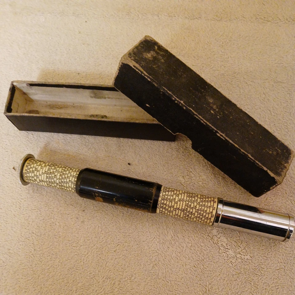 This cylindrical slide rule was introduced around the early 1920s through mid-20th century by inventor Otis King in London. Its helical scale wound around a cylinder gives it a long effective scale length, offering better potential accuracy than a typical pocket slide rule. That unique design and the relative rarity of well preserved versions make it highly collectible. Many of these sell for about $110 to $150 when in good condition with case. For those interested in unusual or non-linear slide rules this model stands out.