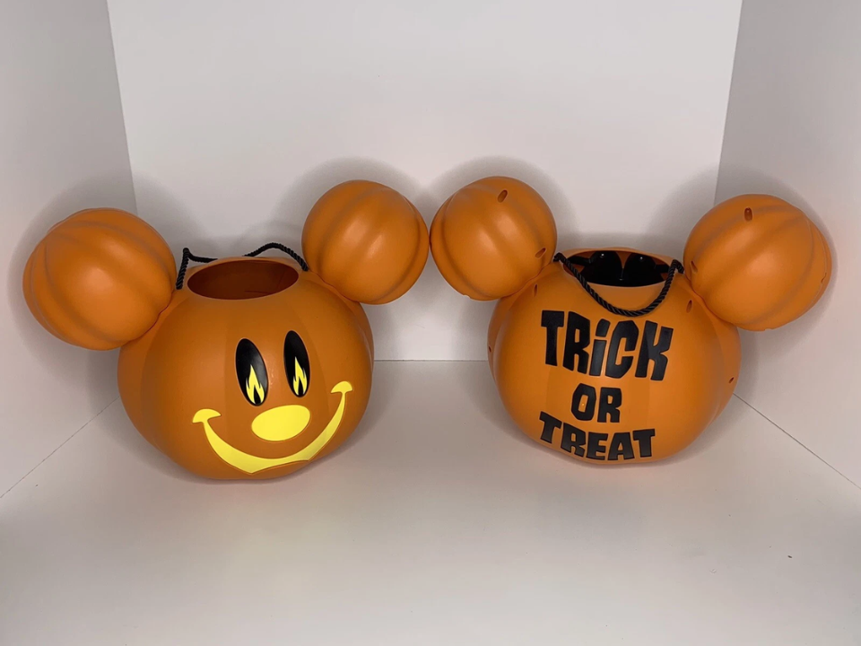 The Mickey Mouse Pumpkin Bucket, released by Disneyland in the 1970s, features the beloved Mickey Mouse character with a pumpkin twist. With Mickey’s face carved into the front of the bucket and the pumpkin body adding a whimsical Halloween touch, this item quickly became a favorite among visitors to the park. It was often sold at Disneyland during Halloween events, making it a nostalgic collectible for Disney fans and Halloween enthusiasts alike.