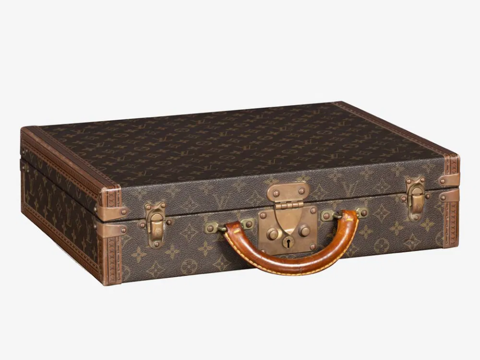 Smaller than a trunk, though still part of the travel case world, the Louis Vuitton President case gives collectors a lower cost entry into the brand. These hard cases were made by Louis Vuitton in France during the 1970s through the 1990s, and examples show monogram canvas or Epi leather with metal fittings. Present-day asking prices often land between about $3,266 and $5,107. The size makes it easy to place on a shelf, desk, or stacked trunk display.