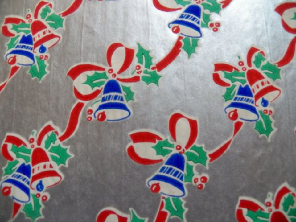 The Silver Bells Gift Wrap from the 1950s is a prime example of classic mid-century holiday packaging. It features elegant silver bells intertwined with holly leaves and a touch of sparkle, giving it a sophisticated yet festive appeal. This wrapping paper was known for its high-quality finish, which helped preserve its vibrant colors over time.