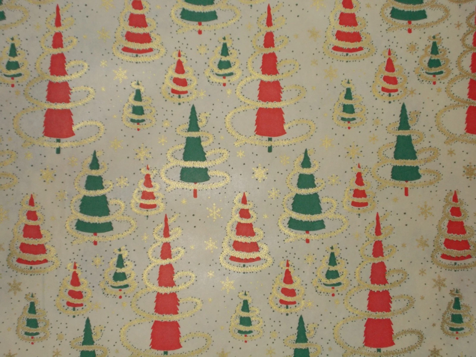 Tinsel Tree and Stars wrapping paper from the 1950s is another cherished design in the world of vintage Christmas collections. This paper features shimmering silver tinsel trees intertwined with bright gold stars, creating a radiant and festive look. It was a symbol of the post-war period, when families were eager to embrace the festive spirit following the hardships of the Great Depression and World War II.