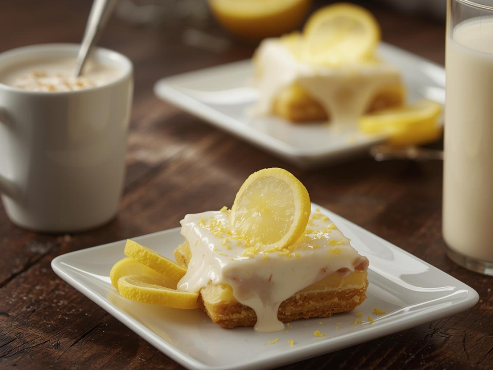 For the bars, mix 1 cup flour, half cup butter, and quarter cup sugar and bake at 350°F for 18 minutes. Top with a mix of 2 eggs, three quarters cup sugar, quarter cup lemon juice, and 1 tablespoon flour, then bake 20 more minutes. For the drink, heat 2 cups milk and stir in 1 cup chopped white chocolate until smooth.
