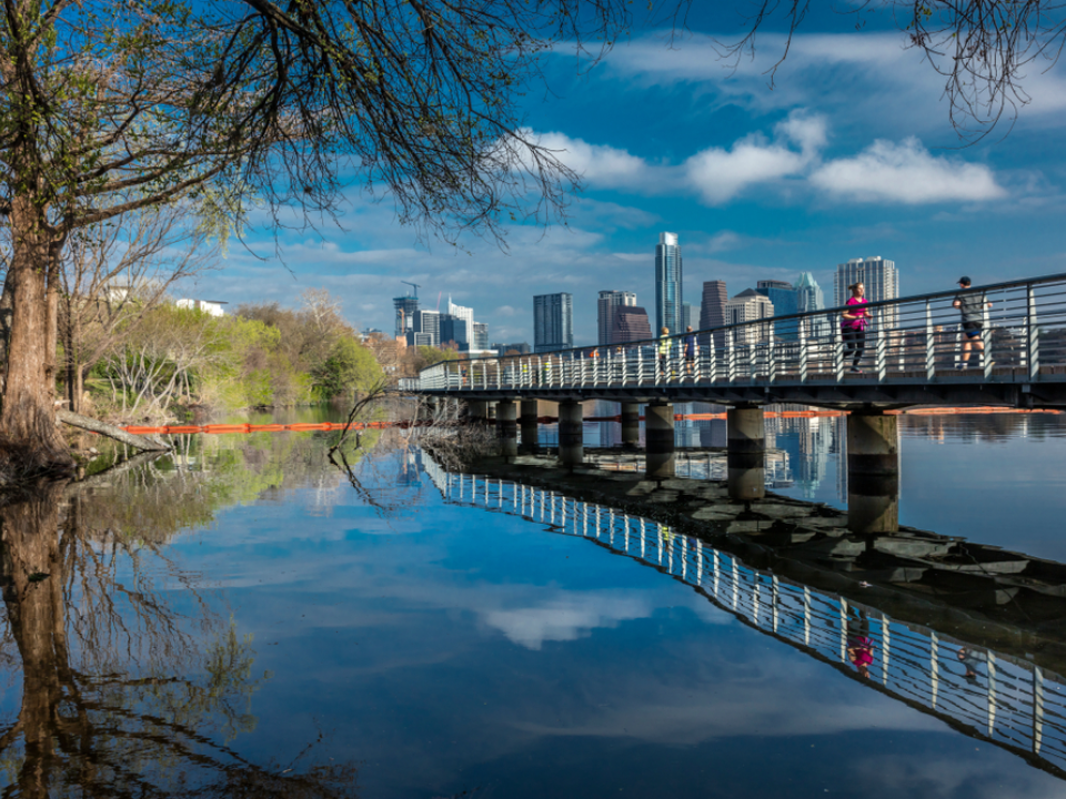 Austin’s Hike and Bike Trail along Lady Bird Lake offers a picturesque waterfront walk with easy access to downtown Austin. The trail spans 10 miles, providing beautiful views of the water and the boats that frequent the lake. The path is flat and easy to navigate, making it perfect for all types of walkers, runners, and cyclists. The trail runs through lush parks and offers plenty of green space to stop and relax.
