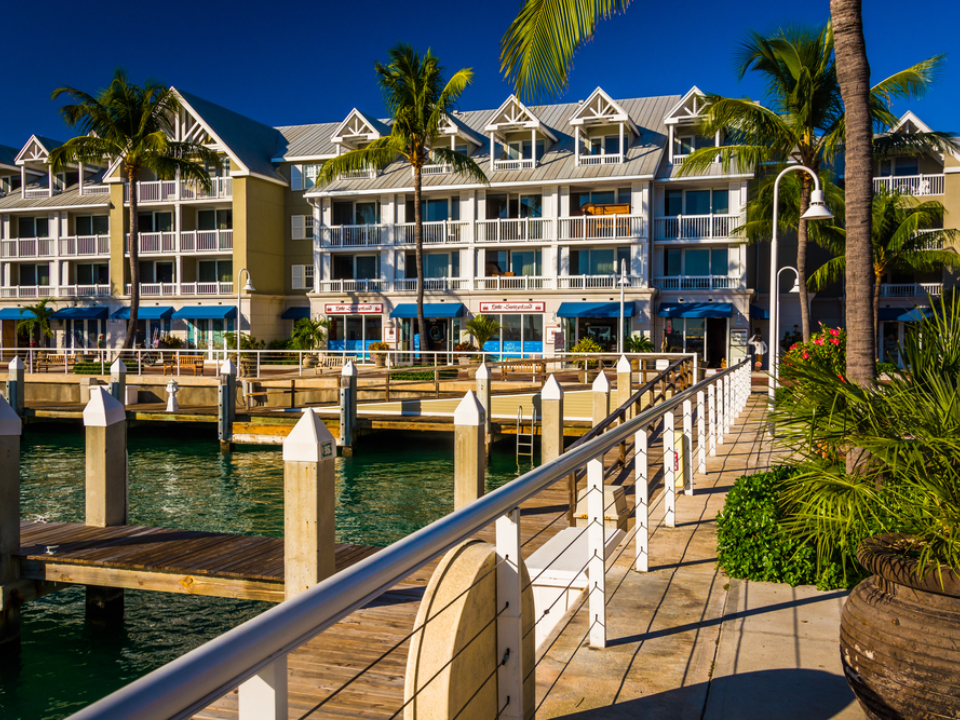 Key West offers a beautiful and relaxing waterfront experience with its famous Mallory Square and nearby piers. The waterfront path provides breathtaking views of the Gulf of Mexico and the Atlantic Ocean, with plenty of boats navigating between the islands. Visitors can walk along the marina where fishing boats and yachts dock, enjoying the vibrant atmosphere.