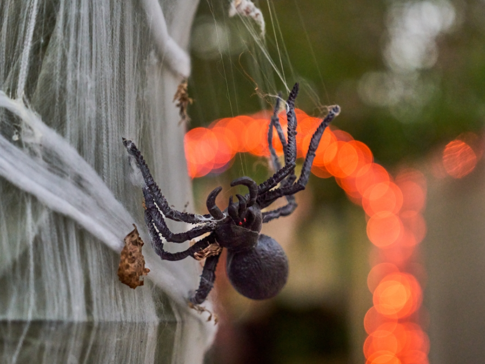A large, black spider makes for an intimidating Halloween decoration. You can hang it above your porch or set it on the floor to surprise anyone walking by. Its dark, glossy body and oversized legs will instantly send shivers down anyone’s spine.