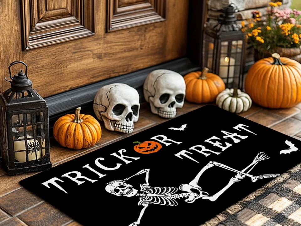 Replace your usual doormat with a Halloween-themed one that adds an element of surprise. Choose a mat with spooky phrases like “Enter if you dare” or images of skulls and witches. This simple yet effective addition makes a bold statement right at your doorstep, welcoming guests with a playful spookiness.