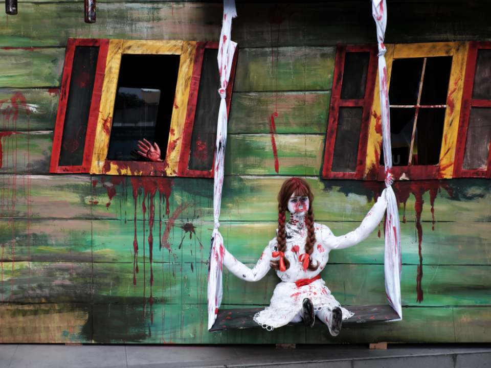 A porch swing can become much more ominous with a few simple tweaks. Drape it in dark fabrics like black lace or tattered cloths and add some cobwebs around it. This will make it look abandoned, as if something or someone was recently sitting there, adding to the haunted atmosphere.