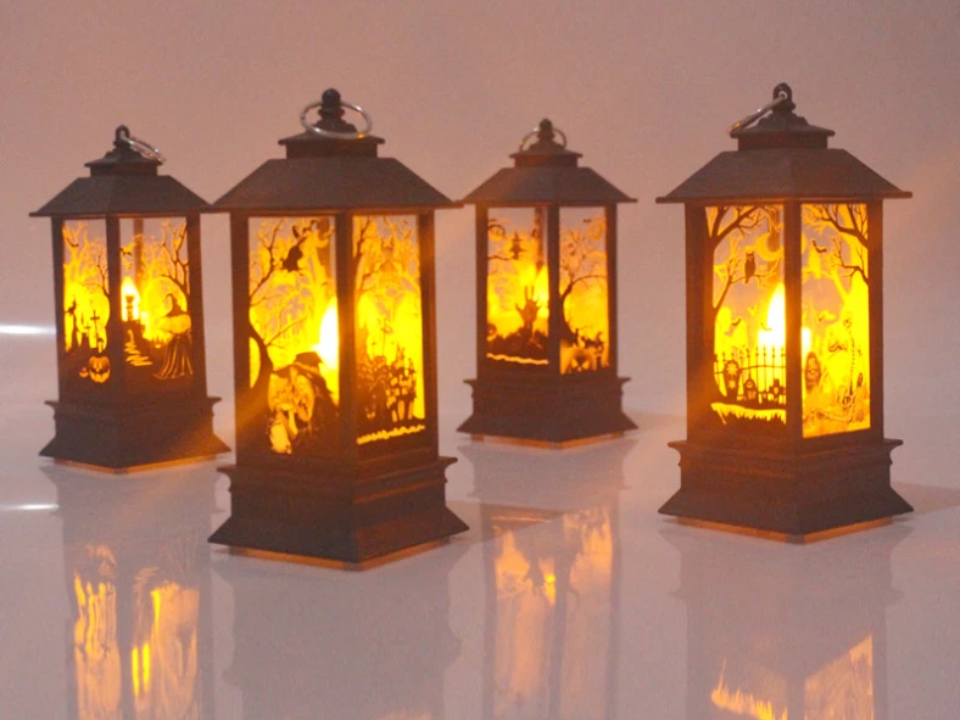 Create an old-world, mystical atmosphere with hanging lanterns. You can place them around your porch or hang them from the ceiling to provide subtle, warm light. Opt for black or metal lanterns for a more vintage look, and use flickering LED candles to give them a glowing effect.