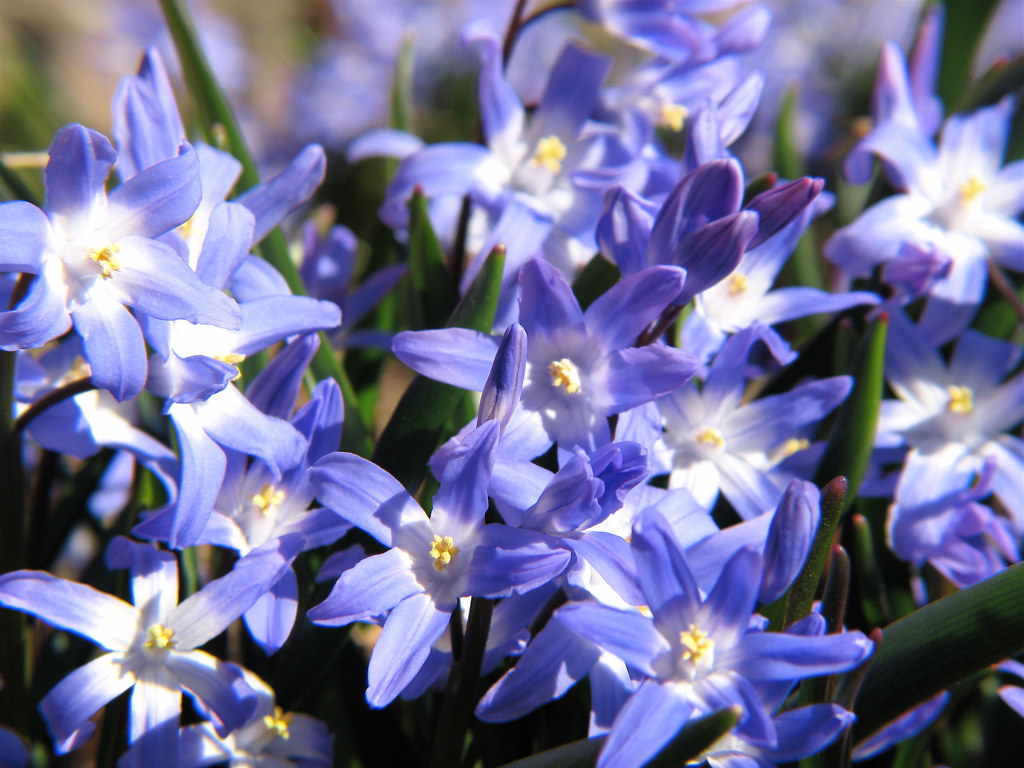 Glory of the snow is a tiny spring flower with starry blooms that often come in pale blue, bright blue, or white. The flowers may have white centers, which makes them look extra crisp when viewed up close. In early March, they can appear in clusters in lawns, garden edges, and places where bulbs have naturalized over time. Because they bloom low and in groups, they can look like little patches of sky on the ground.