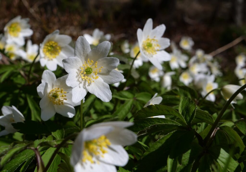 Wood anemone is a delicate woodland flower with star-like white blooms that sway on thin stems. It often appears in early spring when sunlight still reaches the forest floor before trees leaf out. You may spot it in small groups in wooded trails, especially in places with rich soil and some moisture. The flowers can look simple from far away, but they have a graceful shape up close.