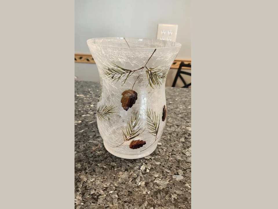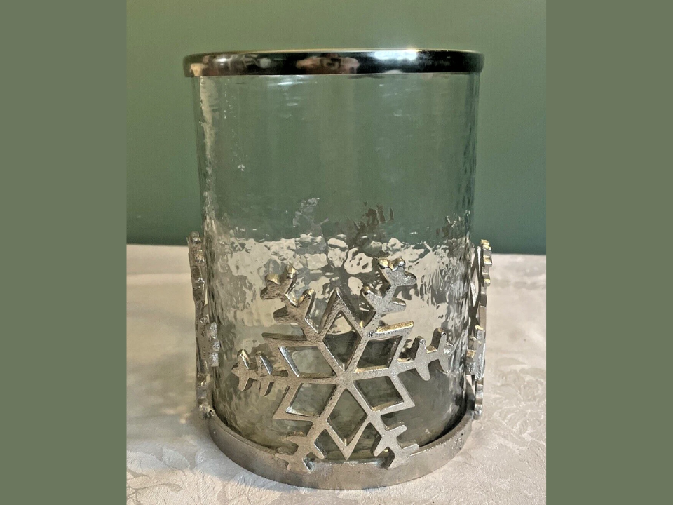 This candle holder brings the beauty of winter forests indoors and is ideal for a nature-themed display. It pairs beautifully with other rustic or woodland-inspired decor items such as wooden crates or plaid throws. The slight sparkle from the frosted finish adds a subtle touch of elegance to any space. Price is approximately $35.