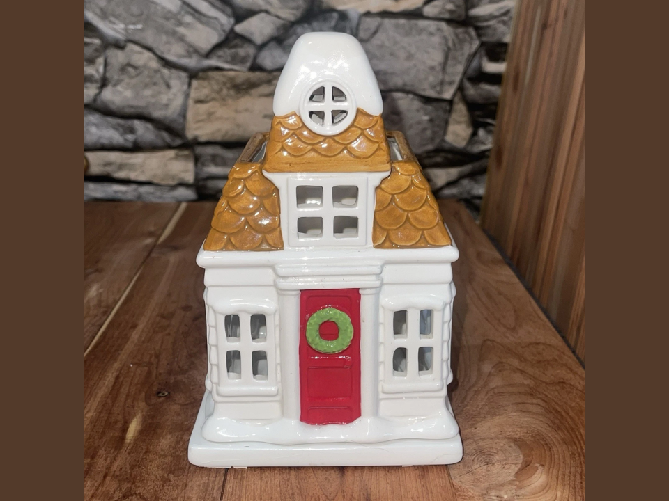 This candle holder looks like a tiny village house made of white ceramic. Small windows are cut so that when the internal candle is lit the light spills out gently through them replicating the look of a cozy home at dusk. The solid ceramic keeps the outside cool while holding warmth inside so you can move it without fuss even when lit.